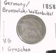 1858 *EXTREMELY RARE* GERMANY/BRUNSWICK-WOLFENBUTTEL 1 GROSCHEN WORLD BOOK VALUE $50.00+ *NICE EARLY VERY GOOD GRADE*!! COIN CAME OUT OF SAFE!! ***Coin, Currency & All Items Listed in this auction - Grades, Conditions and Values are not Safe Deposit Coins LLC Responsibilty. Grades, Condition and Values are determined by Consigner(s) & Buyers ONLY