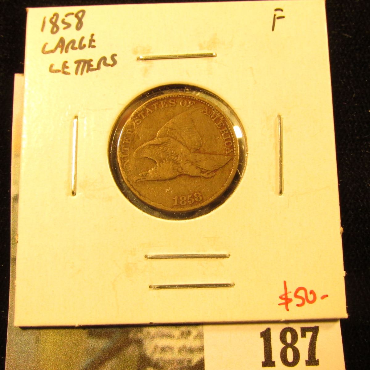1858 Flying Eagle Cent, Large Letters, F, value $50