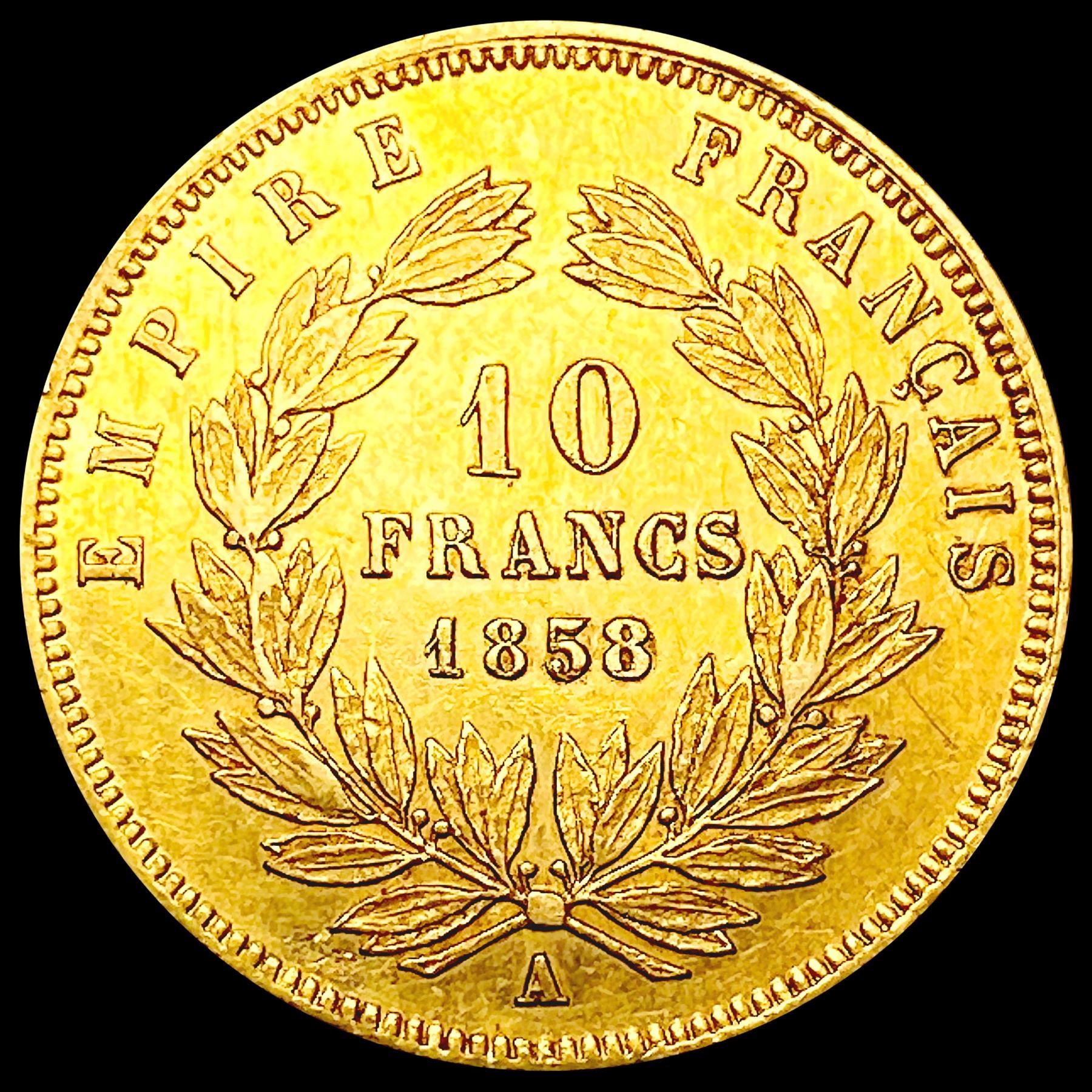 1858 France .0933oz Gold 10 Francs CLOSELY UNCIRCU