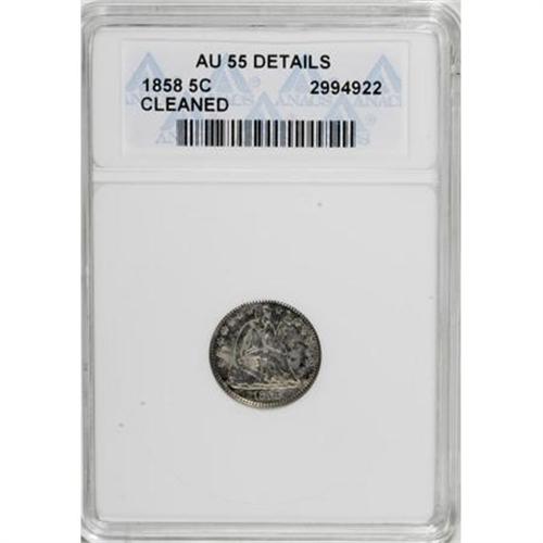 <B>1858 H10C --Cleaned--ANACS. AU55 Details.</B></I> NGC Census: (7/558). PCGS Population (23/421). Mintage: 3,500,000. Numismedia Wsl. Price for NGC/PCGS coin in AU55: $95. (#4367)<BR><BR><B>Coin Engraver:</B> Christian Gobrecht<BR><BR><b>Shipping:</b> Coins & Currency (<a target="_blank" href="http://www.heritageauctions.com/common/shipping.php">view shipping information</a>)