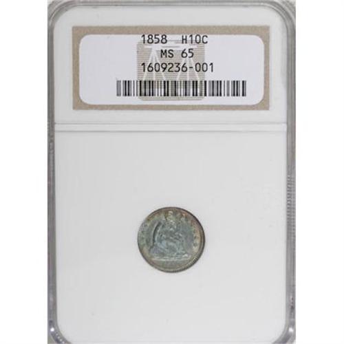 <B>1858 H10C MS65 NGC.</B></I> Highly lustrous surfaces yield light aqua-blue patina in the centers bordered by rose-beige at the peripheries. A well directed strike sharpens the design elements, and both faces have been well cared for.<BR><I>From The Madison Collection.</B></I><BR><BR><B>Coin Engraver:</B> Christian Gobrecht<BR><BR><b>Shipping:</b> Coins & Currency (<a target="_blank" href="http://www.heritageauctions.com/common/shipping.php">view shipping information</a>)