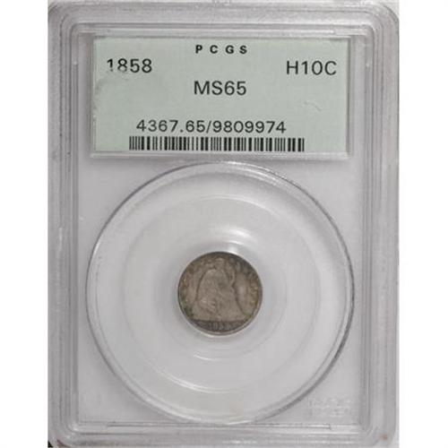 <B>1858 H10C MS65 PCGS.</B></I> Double Date. PCGS Population (78/55). NGC Census: (100/74). Mintage: 3,500,000. Numismedia Wsl. Price for NGC/PCGS coin in MS65: $940. (#4367)<BR><BR><B>Coin Engraver:</B> Christian Gobrecht<BR><BR><b>Shipping:</b> Coins & Currency (<a target="_blank" href="http://www.heritageauctions.com/common/shipping.php">view shipping information</a>)