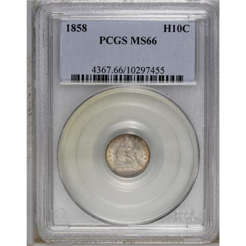 1858 H10C MS66 PCGS. Remarkably well-preserved with so