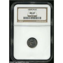 <table><tr><td><TABLE cellSpacing=0 cellPadding=0 width="100%" bgColor=#000000 border=0><TBODY> <TR><TD width="100%"><TABLE cellSpacing=1 cellPadding=3 width="100%" border=0><TBODY><TR><TD width="100%" bgColor=#79735c><FONT face=arial color=#ffffff size=3><B>Description</B> </FONT></TD></TR><TR><TD width="100%" bgColor=#ffffff><FONT face=arial size=2><B>1858 H10C MS67 NGC.</B></I> Well struck, with little of the frequently-seen central softness of this date, and nearly mark-free. This Superb Gem also displays excellent luster, and gorgeous deep purple-rose toning on both sides, while a few faint die clash marks (as struck) rest on the upper reverse field. Population: 12 in 67, 2 finer (7/03).<BR><I>From The Jones Beach Estate, Part II.</B></I> </FONT></TD></TR></TBODY></TABLE></TD></TR></TBODY></TABLE><BR><A name=PricesRealized></A><TABLE cellSpacing=0 cellPadding=0 width="100%" bgColor=#000000 border=0><TBODY><TR><TD width="100%"><TABLE cellSpacing=1 cellPadding=3 width="100%" border=0><TBODY><TR><TD width="100%" bgColor=#79735c><A name=PR><FONT face=arial color=#ffffff size=3><B>Previous Prices from Heritage Auctions</B> </FONT></A></TD></TR><TR><TD bgColor=#f6f6ed><TABLE cellSpacing=0 cellPadding=0 width="100%" border=1><TBODY><TR><TD align=middle width="33%"><B>Date</B></TD><TD align=middle width="33%"><B>Service</B></TD><TD align=middle width="33%"><B>Price</B></TD></TR><TR bgColor=whitesmoke><TD width="33%"><B>06/02/2001</B></TD><TD width="33%">NGC</TD><TD width="33%">$2,472.50</TD></TR><TR bgColor=whitesmoke><TD width="33%"><B>10/01/1993</B></TD><TD width="33%">NGC</TD><TD width="33%">$4,510.00</TD></TR></TBODY></TABLE></TD></TR><TR><TD bgColor=#ffffff><FONT face=arial size=1 ?>PLEASE NOTE: All prices realized reflect the final hammer price PLUS the buyer's premium in auctions that charge a buyer's premium. Each item has a notation at the top of the listing indicating whether that lot included a buyer's premium. Example: A item that sells with a final hammer price of $100 and a 20% buyer's premium will display with a price realized of $120. All information listed is intended to be as accurate as possible, but errors are possible. Please use this guide carefully and inform us of any inaccuracies. </FONT></TD></TR></TBODY></TABLE></TD></TR></TBODY></TABLE><BR><TABLE cellSpacing=0 cellPadding=0 width="100%" bgColor=#000000 border=0><TBODY><TR><TD width="100%"><TABLE cellSpacing=1 cellPadding=3 width="100%" border=0><TBODY><TR><TD width="100%" bgColor=#79735c colSpan=6><FONT face=arial color=#ffffff size=3><B>Price Guide*</B> </FONT></TD></TR><TR bgColor=#f6f6ed><TD align=middle><B>Grade</B> </TD><TD align=middle><B>Coin World<BR>(Trends)</B> </TD><TD align=middle><B>Numismedia<BR>Retail</B> </TD><TD align=middle><B>Numismedia<BR>Wholesale</B> </TD><TD align=middle><B>Coin<BR>Universe</B> </TD><TD align=middle><B>Heritage<BR>Value Index</B> </TD></TR><TR bgColor=#ffffff><TD align=middle>66</TD><TD align=right>---</TD><TD align=right>---</TD><TD align=right>$1,500.00</TD><TD align=right>$2,150.00</TD><TD align=right>$1,610.00</TD></TR><TR style="FONT-WEIGHT: bold" bgColor=#cccfdd><TD align=middle>67</TD><TD align=right>---</TD><TD align=right>---</TD><TD align=right>$3,150.00</TD><TD align=right>$5,100.00</TD><TD align=right>$3,135.00</TD></TR><TR bgColor=#ffffff><TD align=middle>68</TD><TD align=right>---</TD><TD align=right>---</TD><TD align=right>---</TD><TD align=right>---</TD><TD align=right>---</TD></TR><TR bgColor=#ffffff><TD colSpan=6><FONT size=1>*All information listed is intended to be as accurate as possible, but errors are possible. No item may be returned or refused based on this information which is provided as a service to our customers. You should contact each pricing source directly to determine the accuracy of this information. </FONT></TD></TR></TBODY></TABLE></TD></TR></TBODY></TABLE><BR><TABLE cellSpacing=0 cellPadding=0 width="100%" bgColor=#000000 border=0><TBODY><TR><TD width="100%"><TABLE cellSpacing=1 cellPadding=3 width="100%" border=0><TBODY><TR><TD width="100%" bgColor=#79735c><FONT face=arial color=#ffffff size=3><B>Population Guide</B> </FONT></TD></TR><TR bgColor=#ffffff><TD align=middle><!-- Begin Output of Population Grid--><TABLE cellSpacing=0 cellPadding=0 width="100%" border=0><TBODY><TR><TD vAlign=center><TABLE cellSpacing=0 width="100%" border=1 cellsadding="3"><TBODY><TR><TD vAlign=center><TABLE cellSpacing=0 cellPadding=3 width="100%" border=1><TBODY><TR><TD vAlign=center align=middle bgColor=#f0f1e8 colSpan=2 <CENTER><FONT face=Arial size=2><B>PCGS Pop </B></FONT><CENTER></CENTER></TD><TD vAlign=center align=middle bgColor=#f0f1e8 colSpan=2><CENTER><FONT face=Arial size=2><B>NGC Pop</B></CENTER></FONT></TD></TR><TR><TD vAlign=center><FONT face=Arial size=2>(67)</FONT> </TD><TD vAlign=center align=right><FONT face=Arial size=2>9</FONT> </TD><TD vAlign=center><FONT face=Arial size=2>(67)</FONT> </TD><TD vAlign=center align=right><FONT face=Arial size=2>12</FONT> </TD></TR><TR><TD vAlign=center><FONT face=Arial size=2>(>67)</FONT> </TD><TD vAlign=center align=right><FONT face=Arial size=2>1</FONT> </TD><TD vAlign=center><FONT face=Arial size=2>(>67)</FONT> </TD><TD vAlign=center align=right><FONT face=Arial size=2>2</FONT> </TD></TR></TBODY></TABLE></TD></TR></TBODY></TABLE></TD></TR></TBODY></TABLE><!-- End Output of Population Grid--></TD></TR></TBODY></TABLE></TD></TR></TBODY></TABLE><BR><TABLE cellSpacing=0 cellPadding=0 width="100%" bgColor=#000000 border=0><TBODY><TR> Important notice: Heritage usually auctions material at the rate of 200-250 lots per hour. On some occasions eBay Live bid software or the Internet may not be able to keep up with the pace of the auction. We recommend placing a realistic absentee bid now as insurance to avoid disappointment. Occasionally the auctioneer may eliminate or reject an eBay Live bid, and the auctioneer may also reopen a lot after the close of the eBay live bidding (usually because we missed an audien