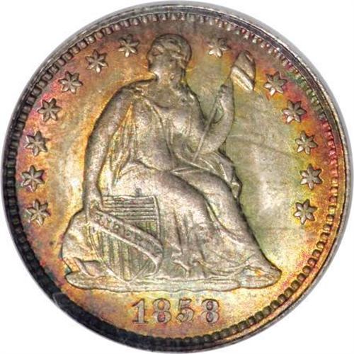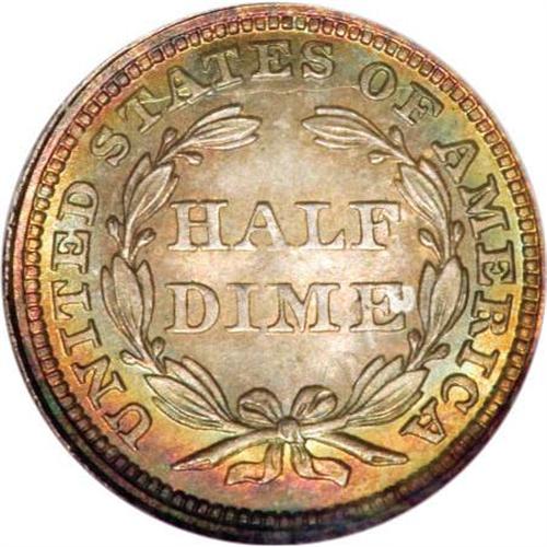 <B>1858 H10C MS67 NGC.</B></I> The 1858 half dime, from a mintage of 3.5 million pieces, is common in all grades through MS65. We present in this lot a challenging Superb Gem that exhibits wonderful low intensity multicolored toning resting upon intensely lustrous surfaces. The design elements are sharply and uniformly impressed, and close examination reveals no mentionable marks. Light as-made clash marks are noted on each side. Census: 18 in 67, 3 finer (10/07).<BR><BR><B>Coin Engraver:</B> Christian Gobrecht<BR><BR><b>Shipping:</b> Coins & Currency (<a target="_blank" href="http://www.heritageauctions.com/common/shipping.php">view shipping information</a>)