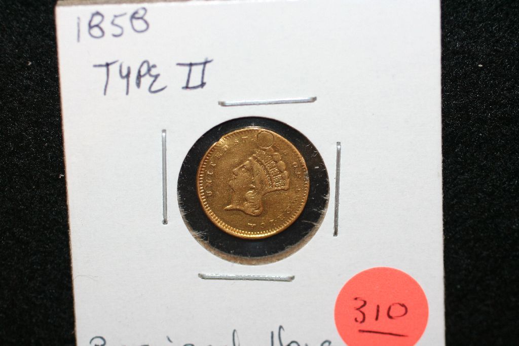1858 Indian Princess $1 Gold Coin, Type II, Repaired Hole