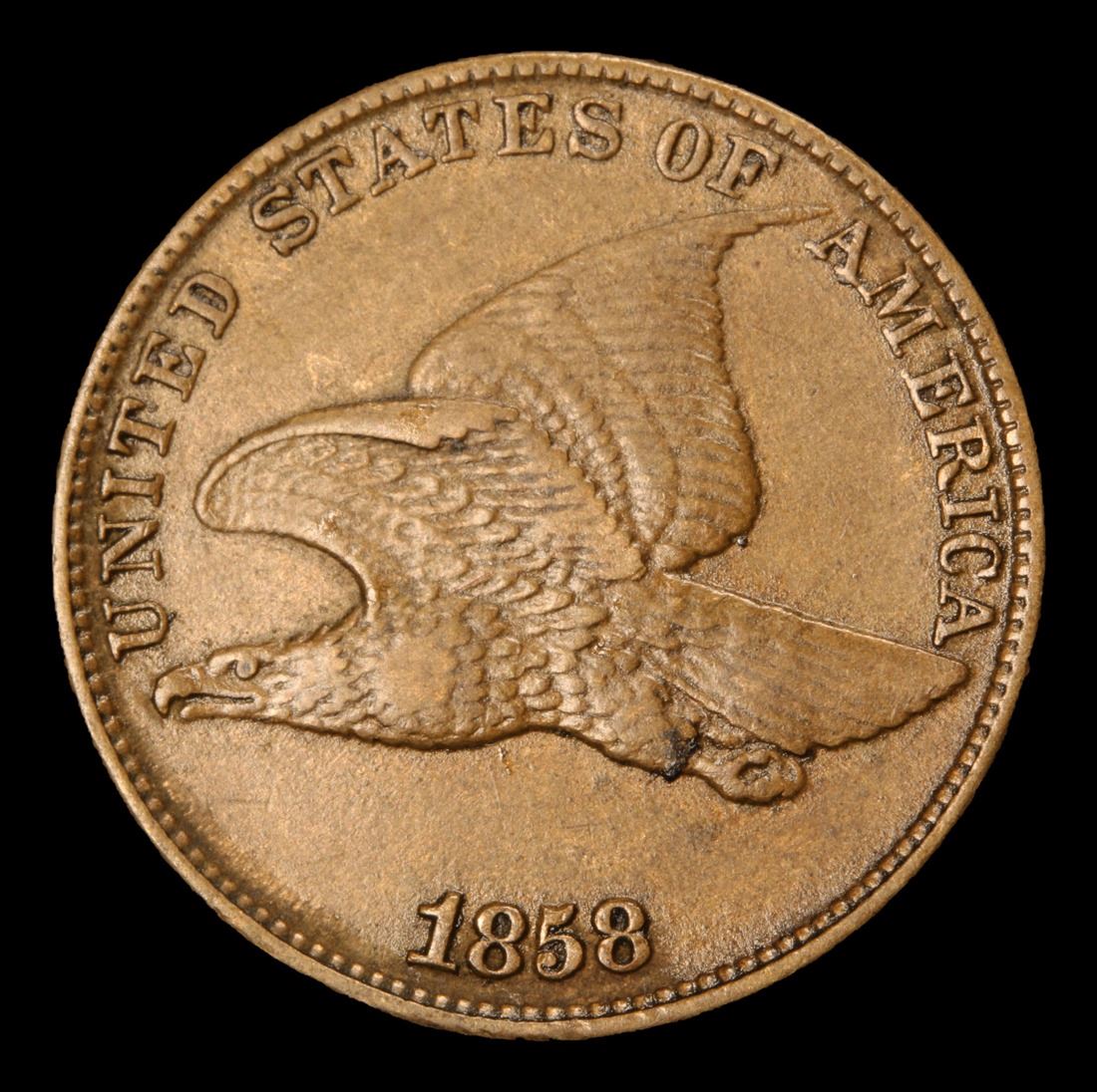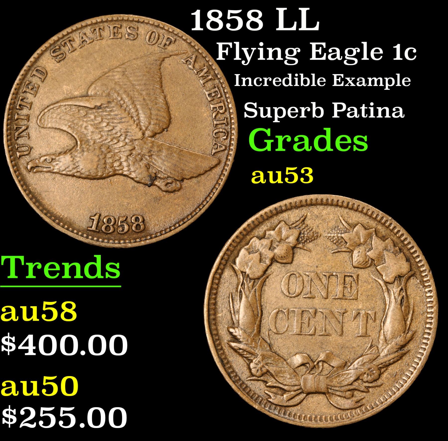 1858 LL Flying Eagle Cent 1c Grades Select AU.        Incredible Example ; Superb Patina A Corey's Pick, Bid to Win, Don't let it get Away Coin