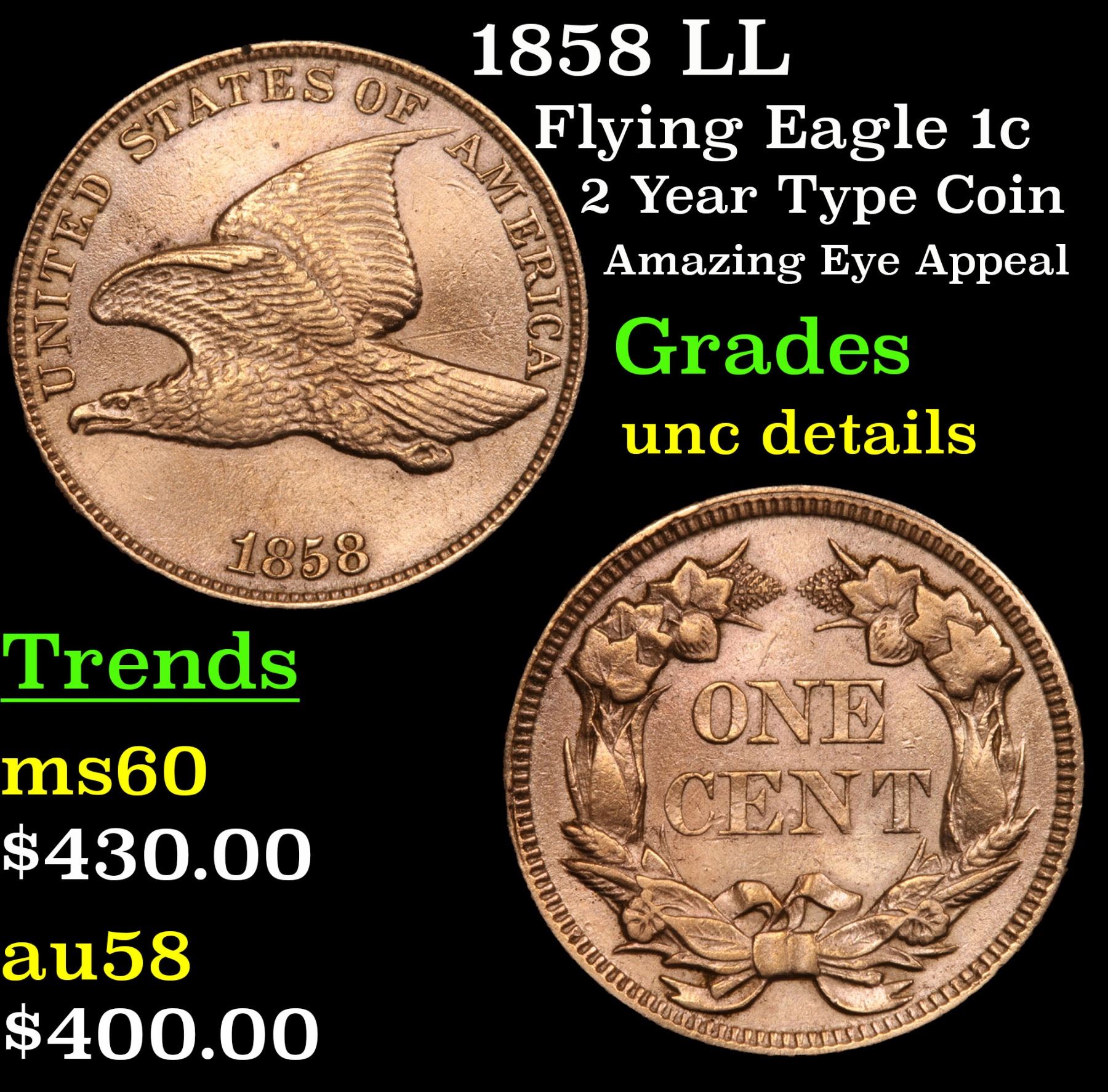 1858 LL Flying Eagle Cent 1c Grades Unc Details.