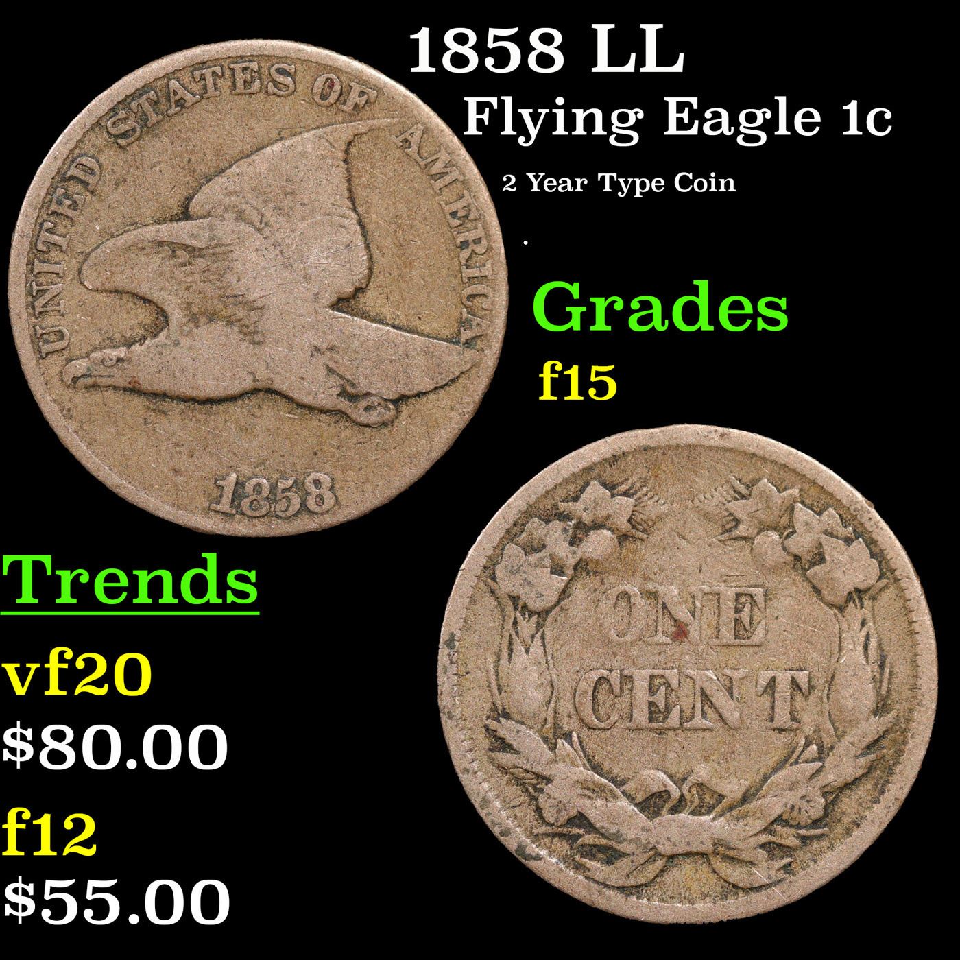 1858 LL Flying Eagle Cent 1c Grades f+.