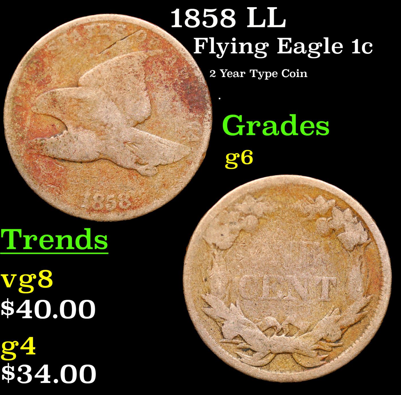 1858 LL Flying Eagle Cent 1c Grades g+.