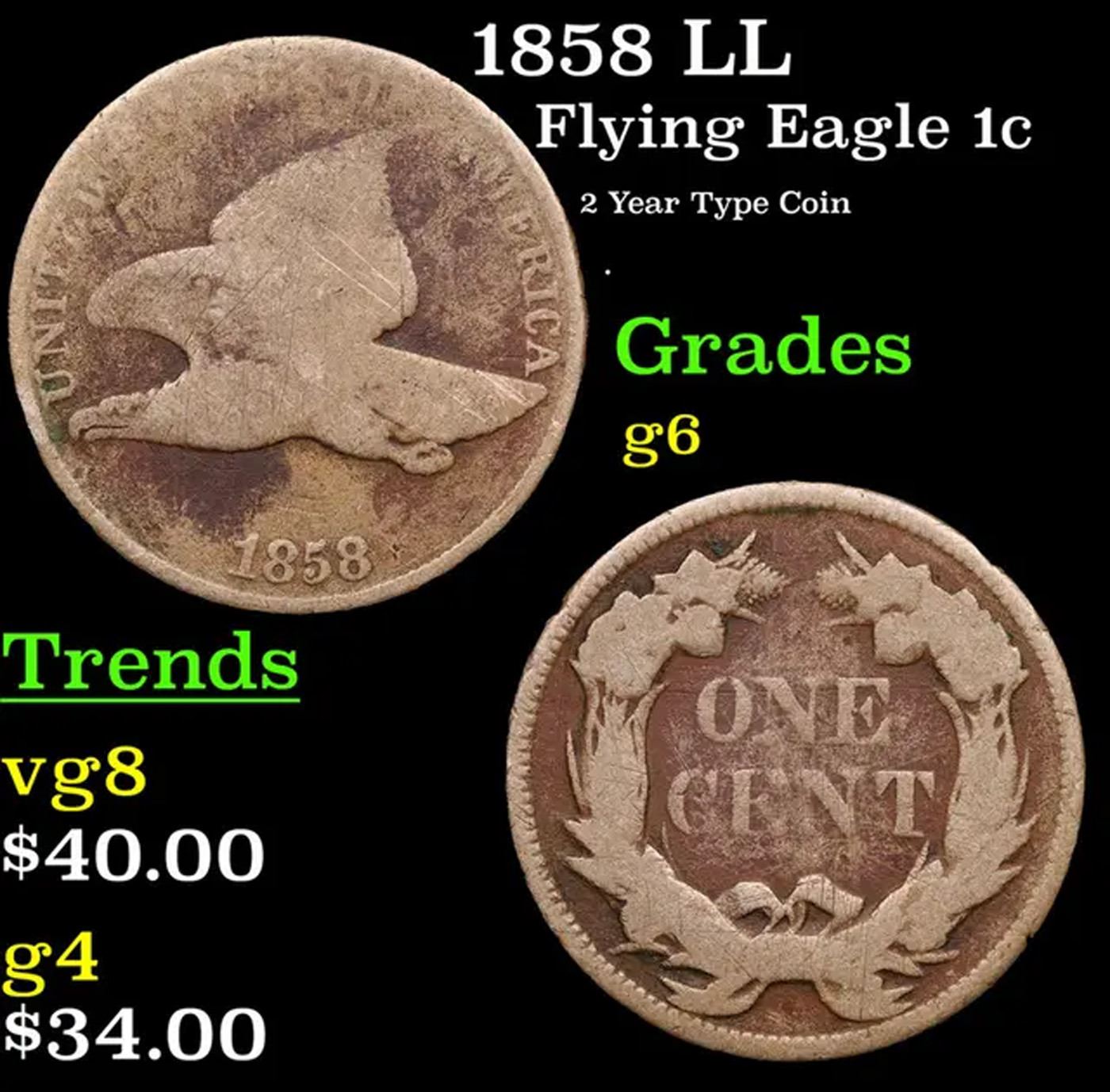 1858 LL Flying Eagle Cent 1c Grades g+.
