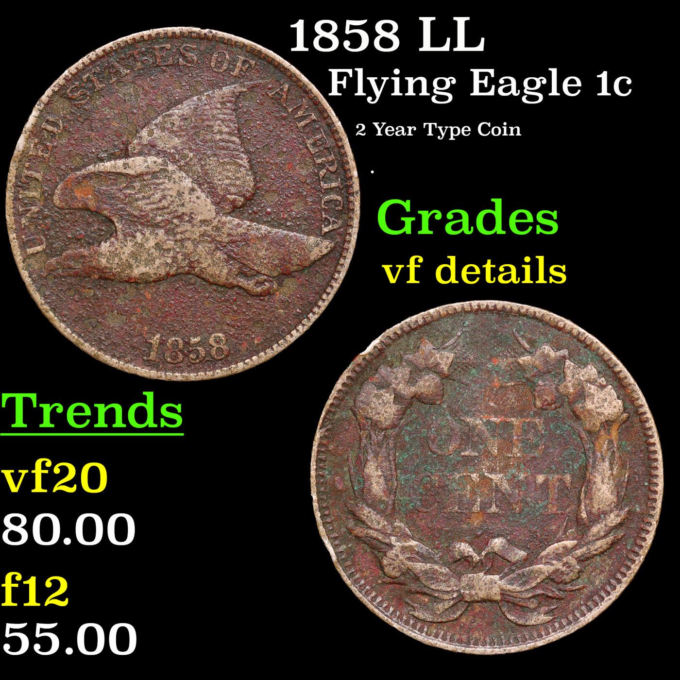 1858 LL Flying Eagle Cent 1c Grades vf details.