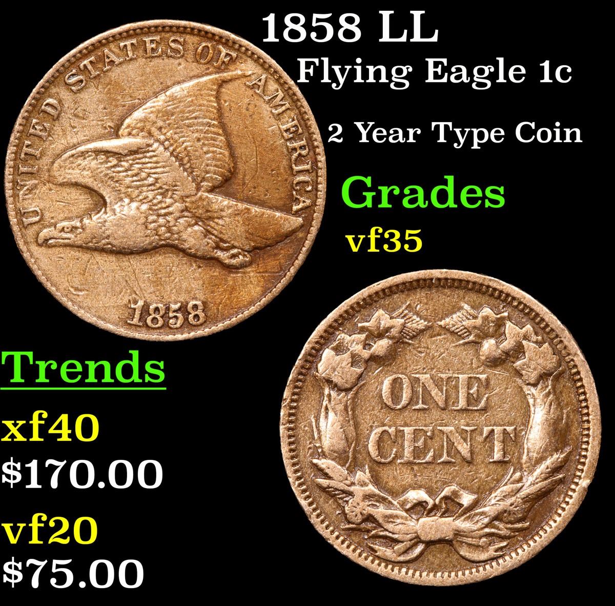 1858 LL 2 Year Type Coin . Flying Eagle Cent 1c Grades vf++.