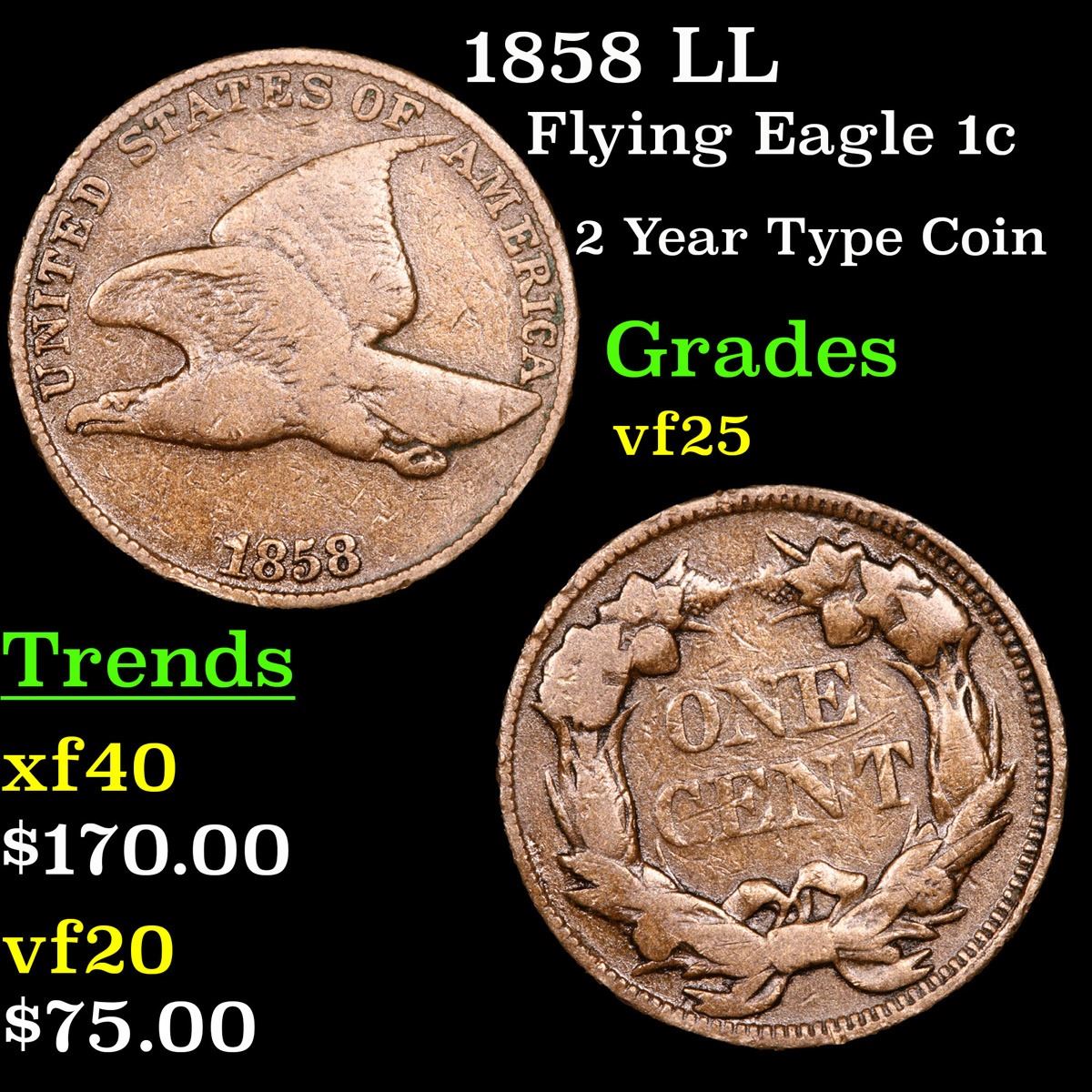 1858 LL 2 Year Type Coin . Flying Eagle Cent 1c Grades vf+.