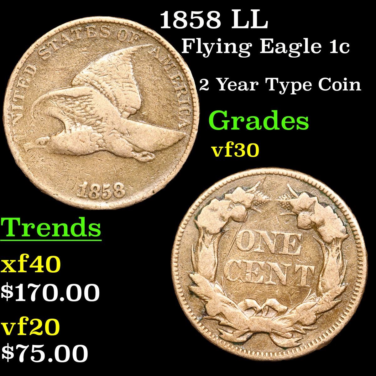 1858 LL 2 Year Type Coin . Flying Eagle Cent 1c Grades vf++.