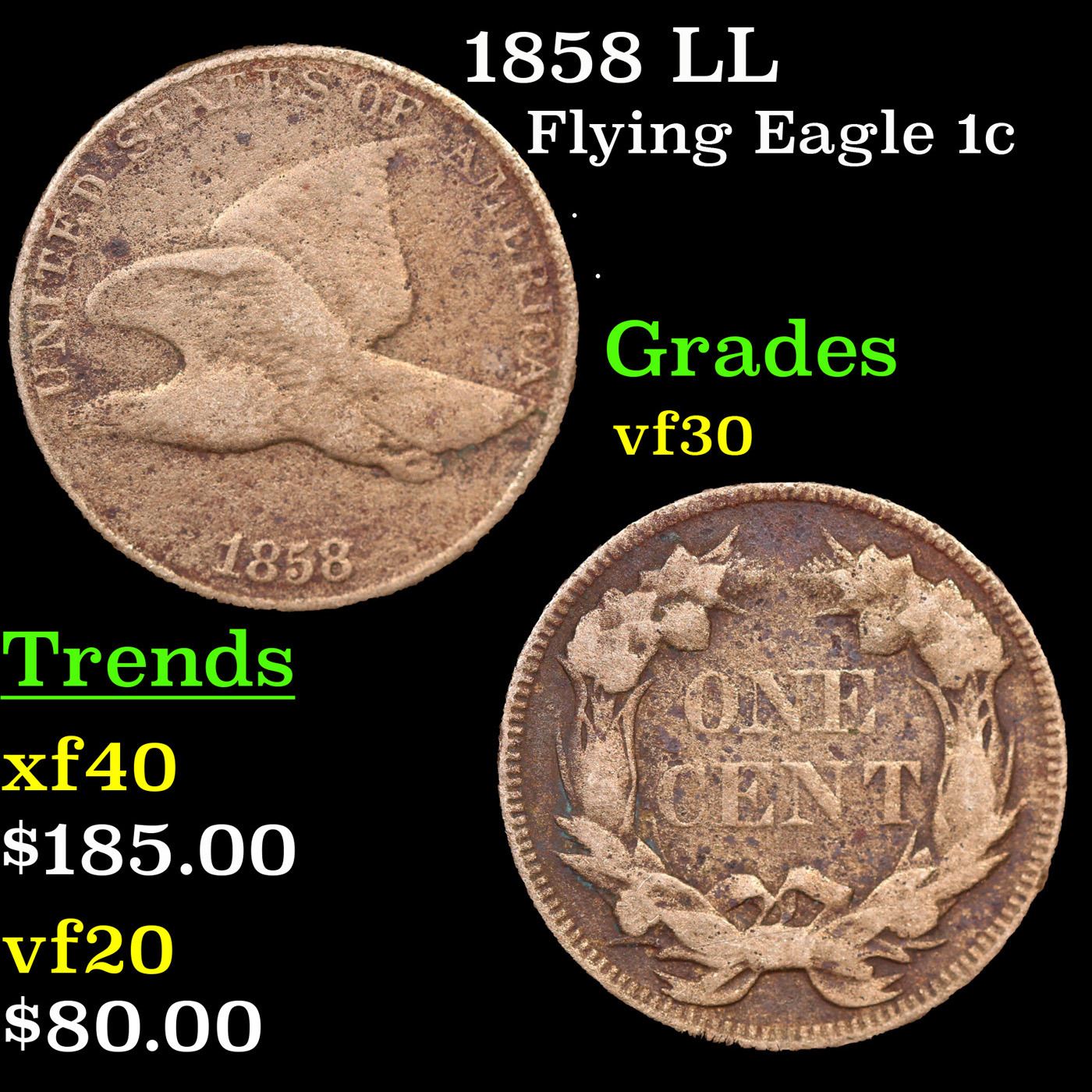1858 LL Flying Eagle Cent 1c Grades vf++.