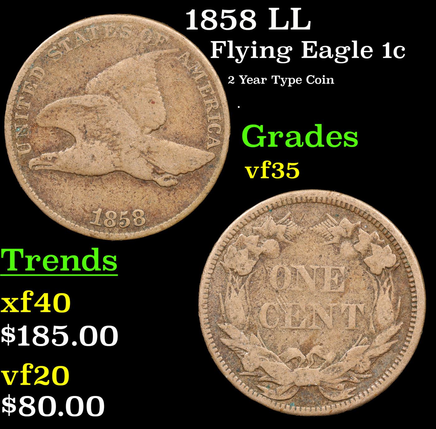 1858 LL Flying Eagle Cent 1c Grades vf++.