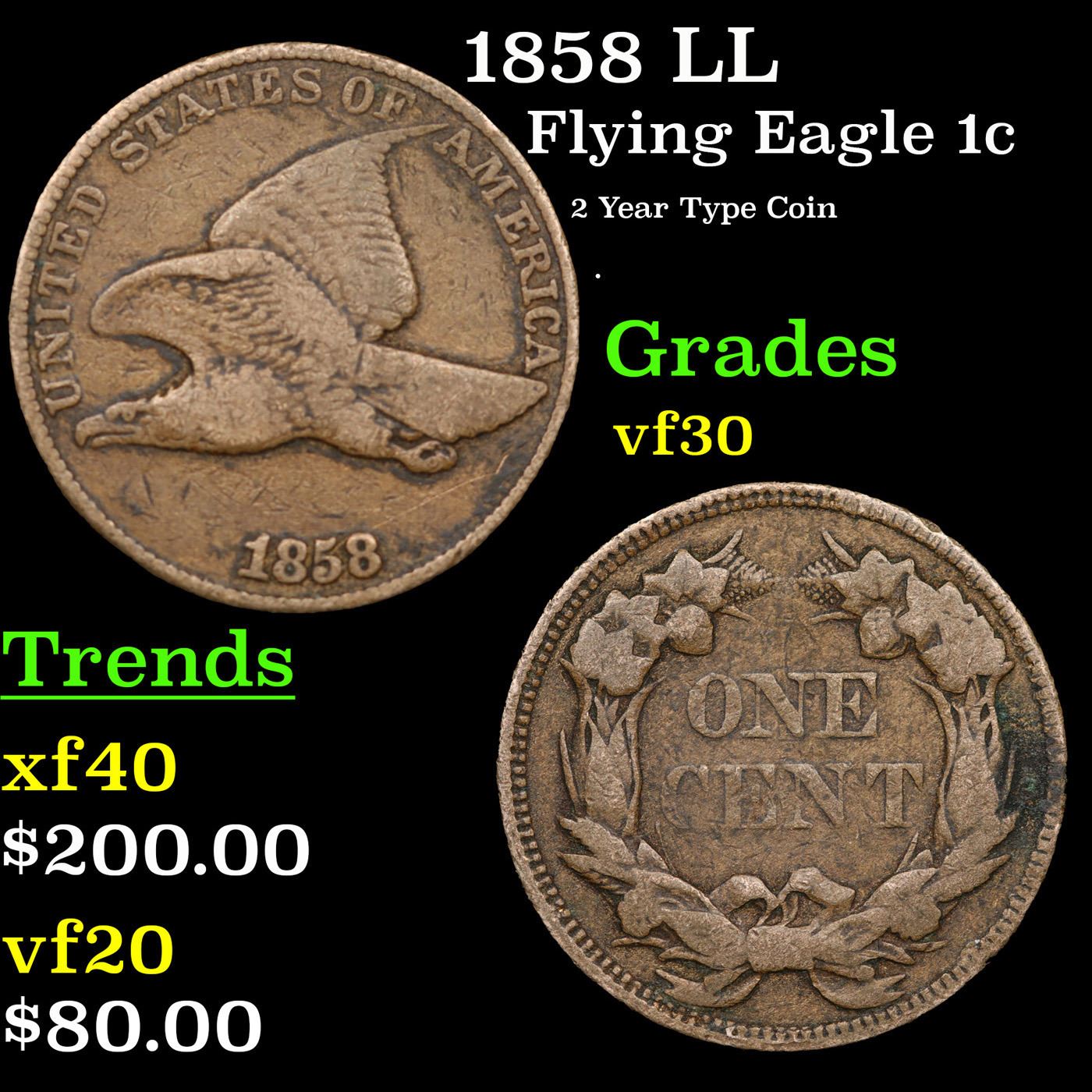 1858 LL Flying Eagle Cent 1c Grades vf++.
