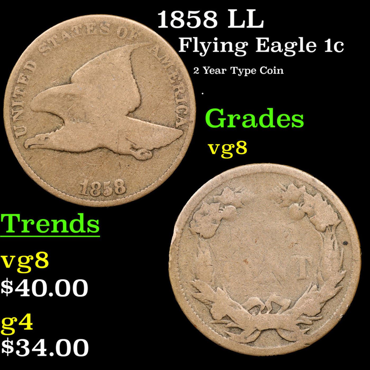 1858 LL Flying Eagle Cent 1c Grades vg, very good.