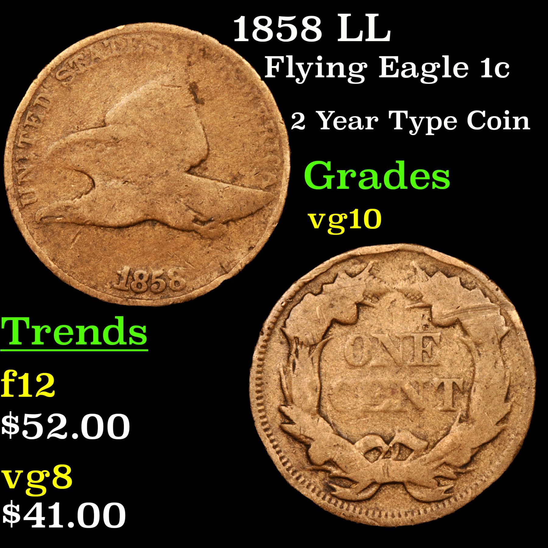 1858 LL Flying Eagle Cent 1c Grades vg+.