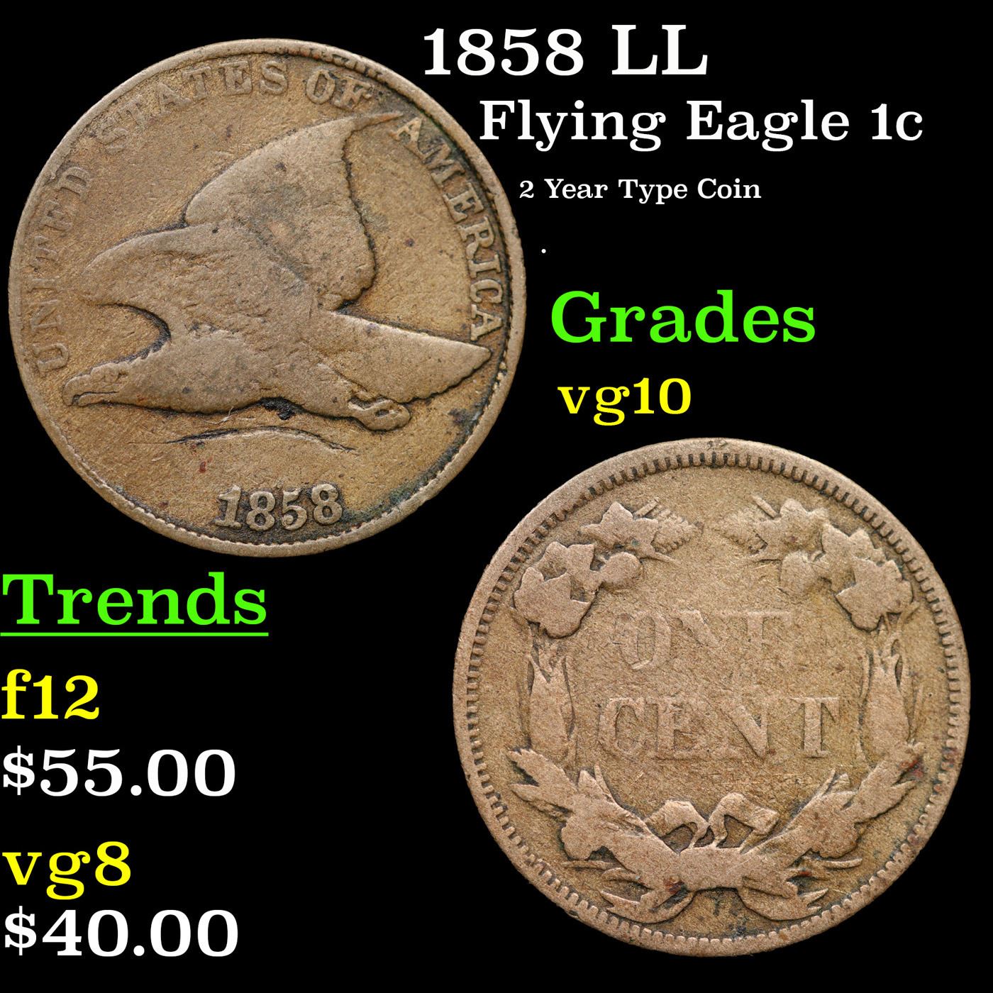 1858 LL Flying Eagle Cent 1c Grades vg+.