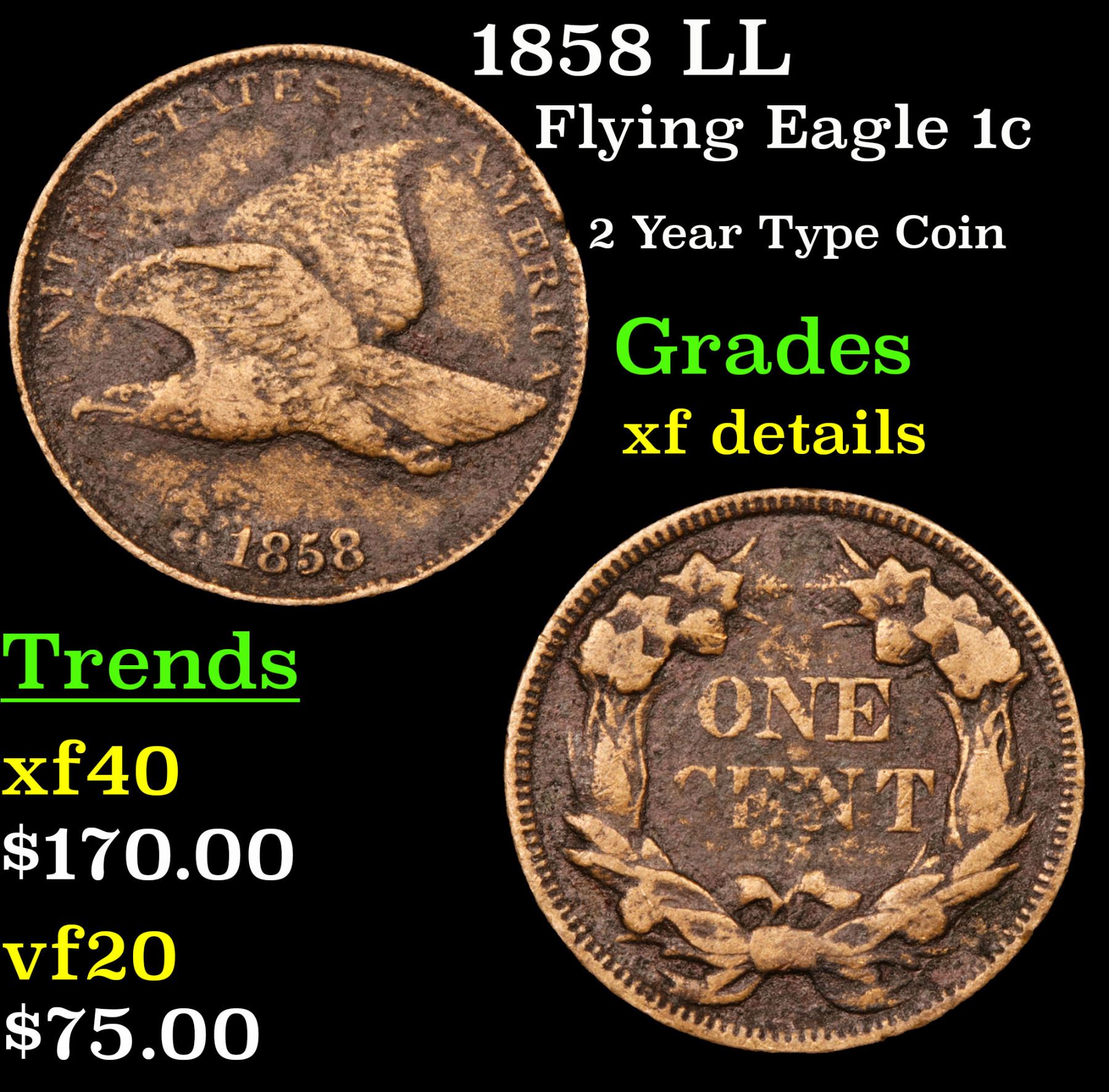 1858 LL Flying Eagle Cent 1c Grades xf details.