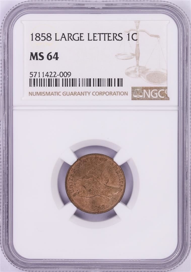 One 1858 Large Letters Flying Eagle Cent Coin NGC MS64. NGC Certified.