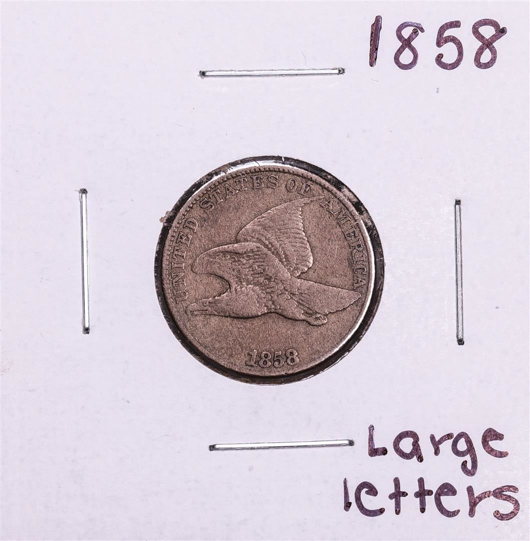 One 1858 Large Letters Flying Eagle Cent Coin.