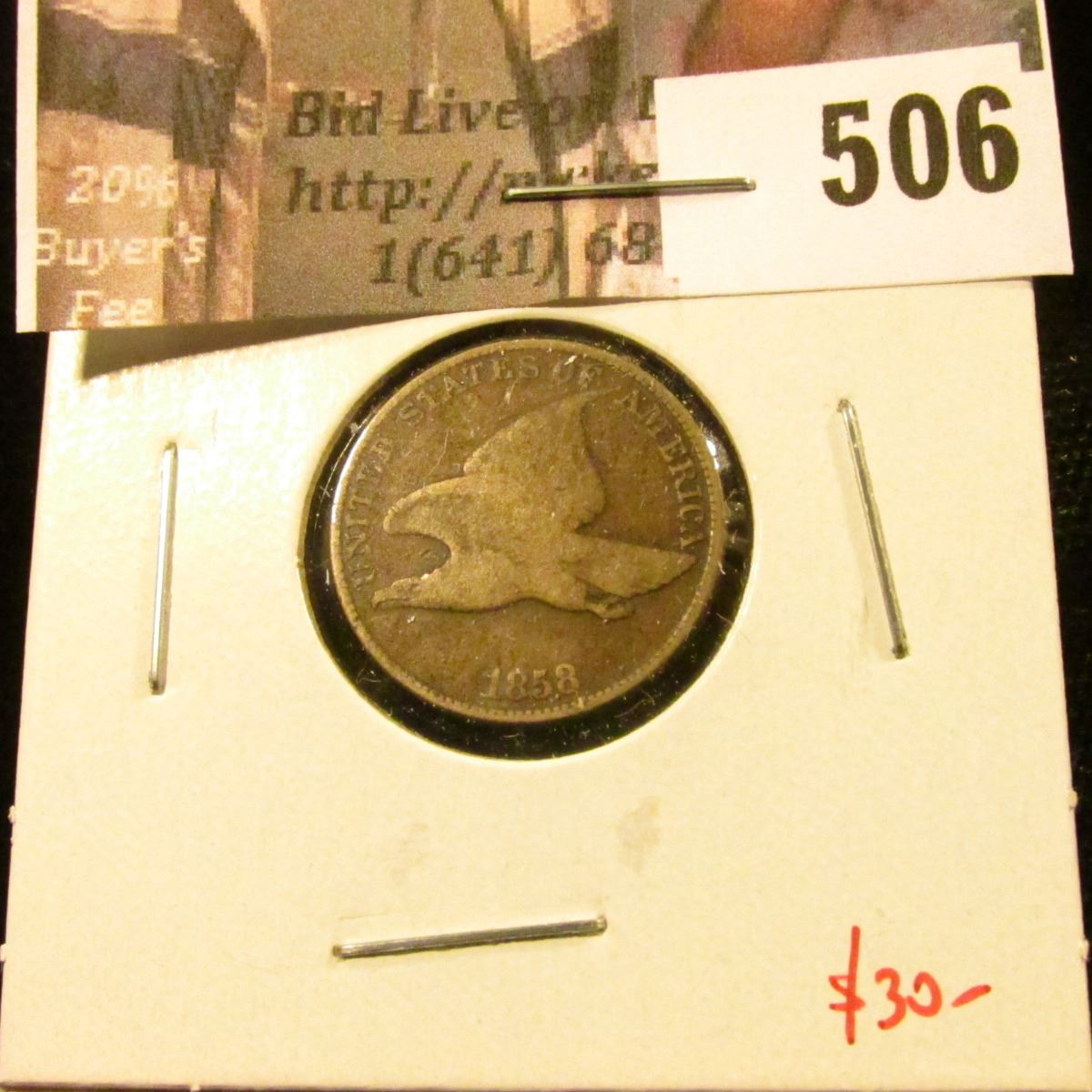 1858 Large Letters Flying Eagle Cent, G, value $30