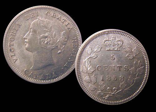 1858 Large date 5¢ ICCS EF40. Lightly toned. Scarce variety.