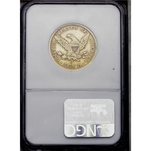 <B>1858-O<$10> XF45 NGC.</B></I> This nicely detailed khaki-gold O-mint ten is relatively unabraded, and has a few freckles of russet debris in protected areas of the reverse. Only 20,000 pieces were struck, but this issue is collectible courtesy of a small hoard found in Jackson, Mississippi, dispersed more than ten years ago.<BR><I>From The Steve Glenn Collection.</B></I> <BR><BR><B>Important notice:</B> Heritage usually auctions material at the rate of 200-250 lots per hour. On some occasions eBay Live bid software or the Internet may not be able to keep up with the pace of the auction. We recommend placing a realistic absentee bid now as insurance to avoid disappointment. Occasionally the auctioneer may eliminate or reject an eBay Live bid, and the auctioneer may also reopen a lot after the close of the eBay live bidding (usually because we missed an audience bid), and may reject your bid even if it shows you as the winning bidder. By bidding via eBay Live, you agree that Heritage may award the lot to another bidder at its sole discretion under the circumstances described above or any other reasonable circumstances. Since eBay bids are not shown to us until we open the lot on the floor, we treat those bids just like floor bids. In most cases the floor responds before the eBay bid is presented to us, due to Internet lag time, so for consistency we have made it a policy that floor bids are always considered first over tie eBay live bids. Also please note that all Heritage lots purchased through eBay Live carry a 20% Buyer's Premium. Please make sure you read the Terms and Conditions before you bid. This lot is being auctioned in conjunction with a live floor auction by Heritage Galleries & Auctioneers. All final auction and invoice information will be supplied by Heritage Galleries & Auctioneers, and all other information should be considered preliminary. Lot:3950 <BR><BR><B>Winning Notification and Billing:</B> After the FINAL session in this auction is complete, Heritage will send e-mail and snail mail invoices. This process normally takes several days. All final auction and invoice information will be supplied by Heritage Galleries & Auctioneers, and all other information should be considered preliminary. <BR><BR>This auction will be conducted on a live auction floor and over the Internet through eBay Live. If you choose to place an absentee bid, please take a moment to <font color='#0000ff'><u><a href='http://pages.ebay.com/liveauctions/help/before/laabsentee.html'>learn how eBay Live absentee bidding works</a></u></font><font color='#000000'>