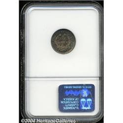 <B>1858-O<10C> MS66 NGC.</B></I> The '58-O is one of more underrated dates in the Seated Dime series, and possibly the most underrated O-mint issue. Often confused with the much more common dates such as 1857-O and 1859-O, 290,000 pieces were struck of this issue. However, few of those managed to survive over the years, and now it is quite elusive above VF condition with Gems being considered extremely rare.<BR> Originally purchased by the consignor at the 1982 Stack's Robison Sale, where it was described as a "pristine Gem," this example is one grade finer than the Norweb specimen that had several small ticks on the obverse. Unusually strong definition for the issue shows overall, with both the head of Liberty and the bow knot sharply detailed. Exceptionally lustrous for a New Orleans product, the surfaces are colorfully tinted in original shades of moss-green, turquoise-blue, crimson, gray, and rose. This represents the single finest example thus far certified by either service (4/04). Accompanied by an NGC<I>Photo Proof</B></I> certificate. <BR><BR><B>Important notice:</B> Heritage usually auctions material at the rate of 200-250 lots per hour. On some occasions eBay Live bid software or the Internet may not be able to keep up with the pace of the auction. We recommend placing a realistic absentee bid now as insurance to avoid disappointment. Occasionally the auctioneer may eliminate or reject an eBay Live bid, and the auctioneer may also reopen a lot after the close of the eBay live bidding (usually because we missed an audience bid), and may reject your bid even if it shows you as the winning bidder. By bidding via eBay Live, you agree that Heritage may award the lot to another bidder at its sole discretion under the circumstances described above or any other reasonable circumstances. Since eBay bids are not shown to us until we open the lot on the floor, we treat those bids just like floor bids. In most cases the floor responds before the eBay bid is presented to us, due to Internet lag time, so for consistency we have made it a policy that floor bids are always considered first over tie eBay live bids. Also please note that all Heritage lots purchased through eBay Live carry a 20% Buyer's Premium. Please make sure you read the Terms and Conditions before you bid.