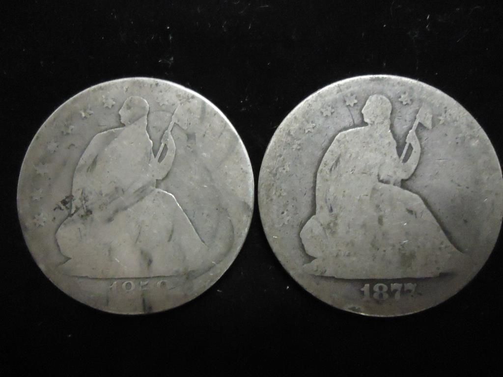 1858-O & 77 SEATED LIBERTY HALF DOLLARS