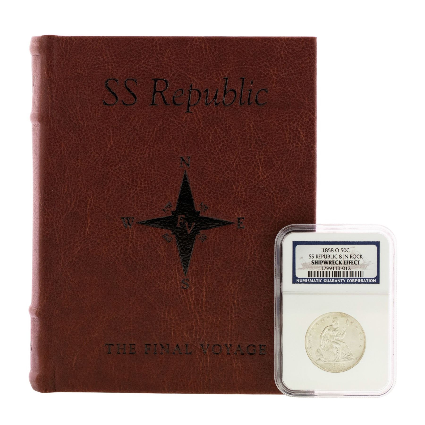 One 1858-O 8 in Rock Seated Liberty Half Dollar Coin NGC Shipwreck Effect w/ Book.