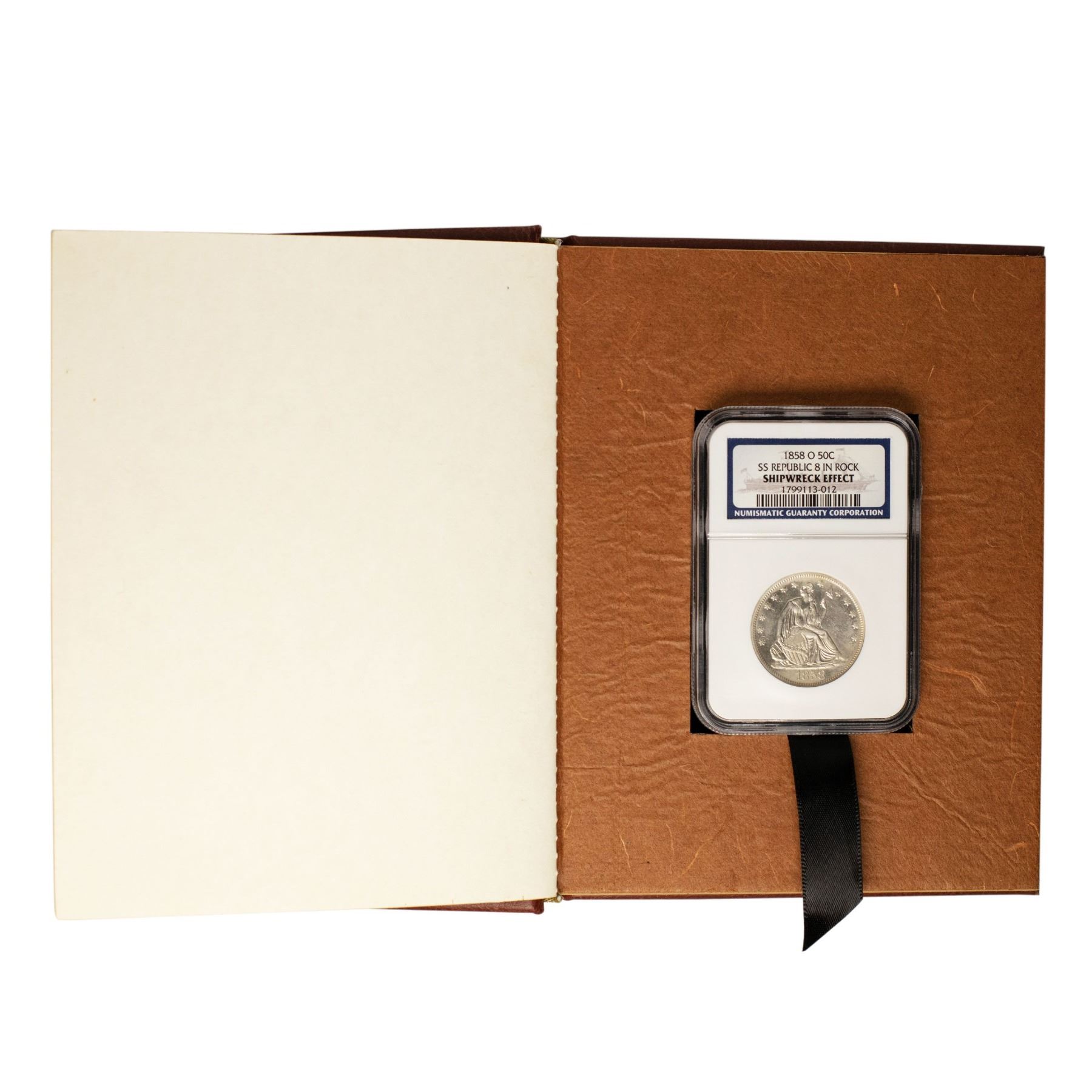 One 1858-O 8 in Rock Seated Liberty Half Dollar Coin NGC Shipwreck Effect w/ Book.
