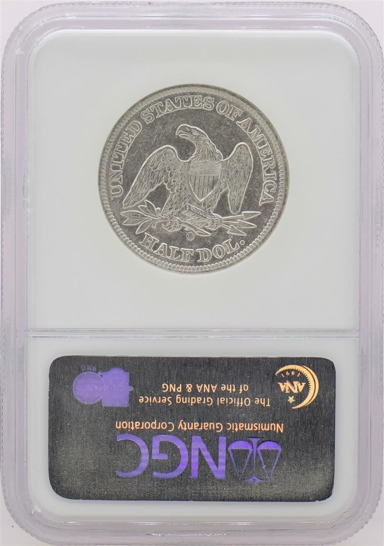 One 1858-O 8 in Rock Seated Liberty Half Dollar Coin NGC Shipwreck Effect w/ Book. NGC Certified.