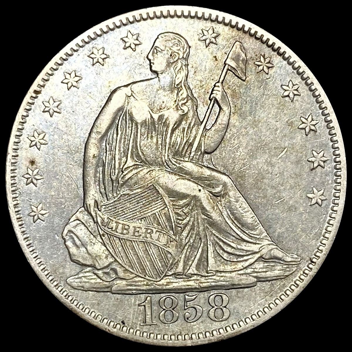 1858-O No Motto Seated Lib Half Dollar CLOSE UNC