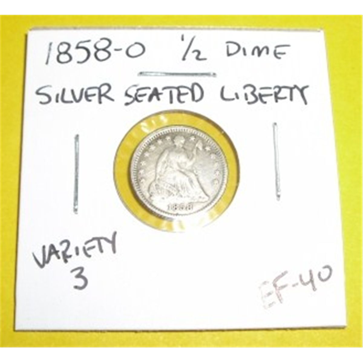 1858-O SILVER Half Dime Seated Liberty Varitey 3 *RARE EXTRA FINE GRADE*!!! ***Coin & Currency Grades, Conditions & Values are not Safe Deposit Coins Responsibilty. Grades, Conditions & Values are determined by Consigner(s) & Buyers***