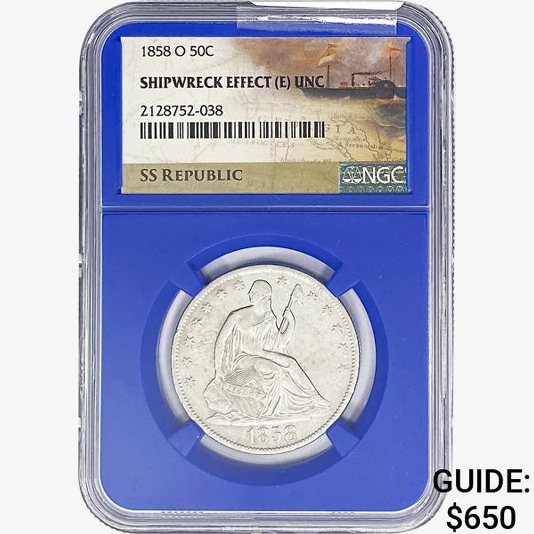 1858-O SL. 50C Ship. Effect W/ Book Set NGC UNC
