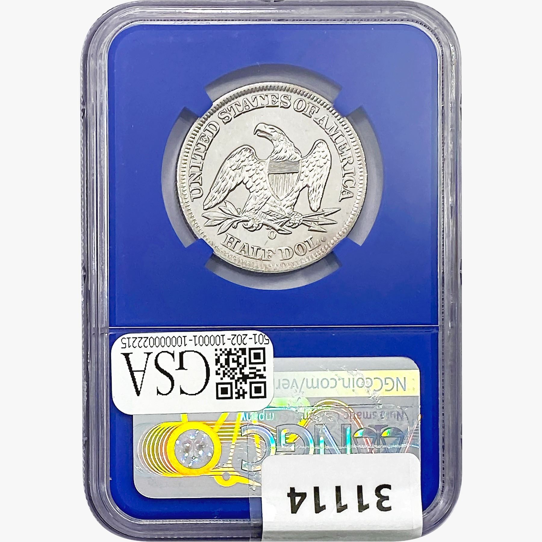 1858-O SL. 50C Ship. Effect W/ Book Set NGC UNC