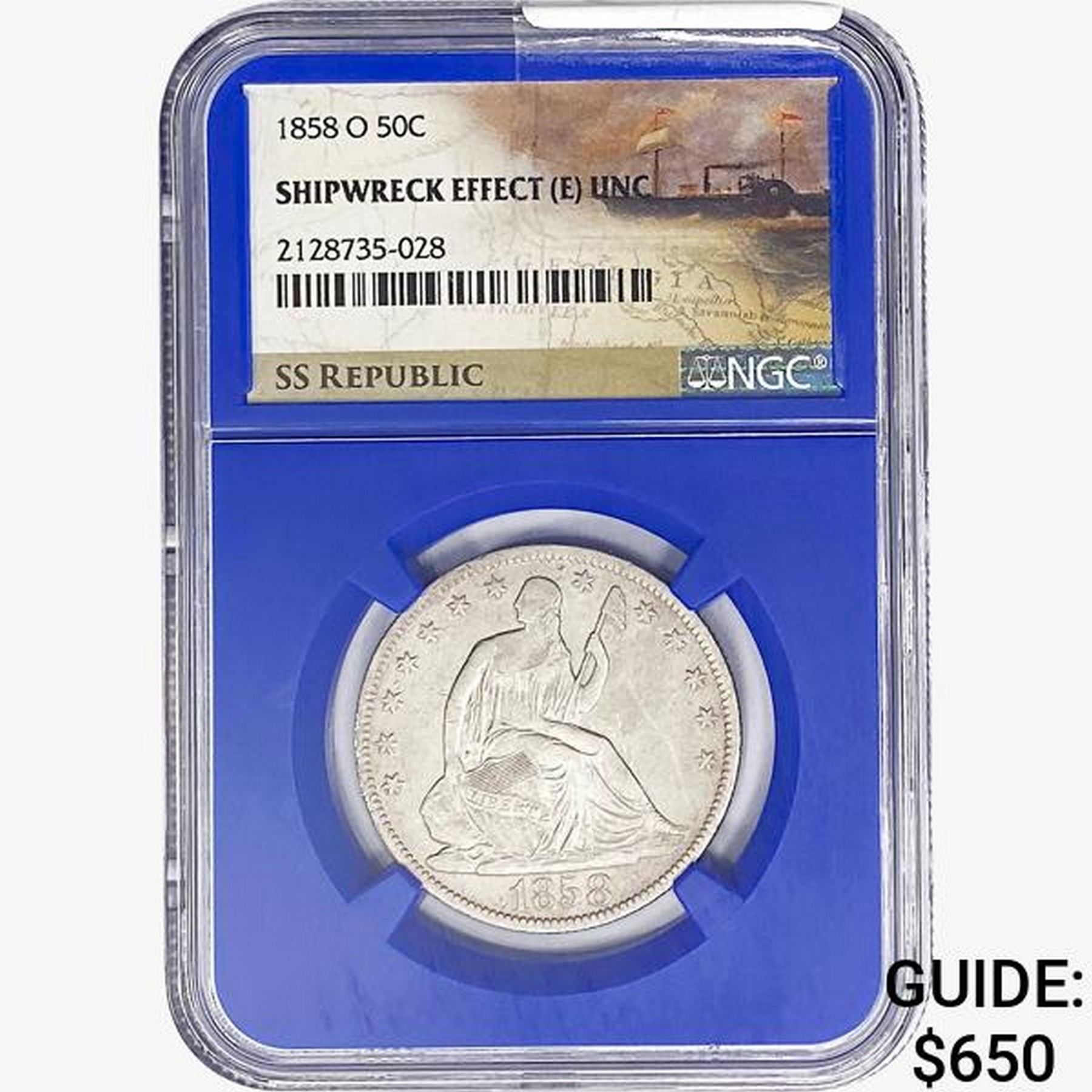 1858-O SL. 50C Ship. Effect W/ Book Set NGC UNC