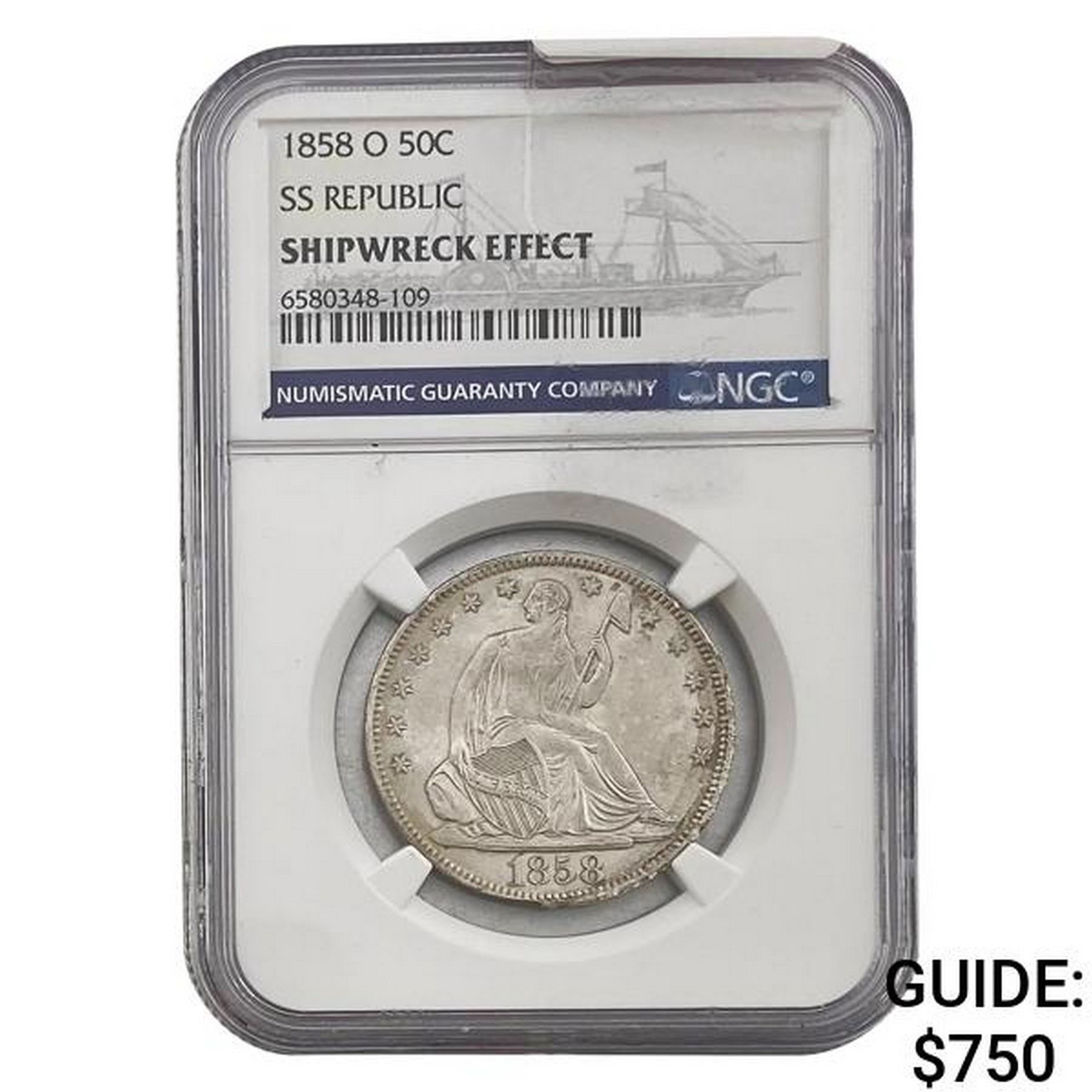 1858-O Seat Lib. 50C Shipwreck SS Republic w/ Box