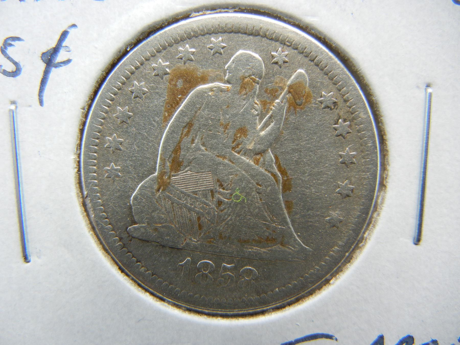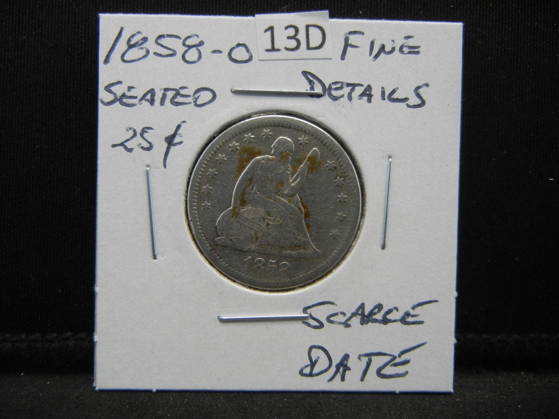 1858-O Seated 25c. Fine Details. Scarce Date.