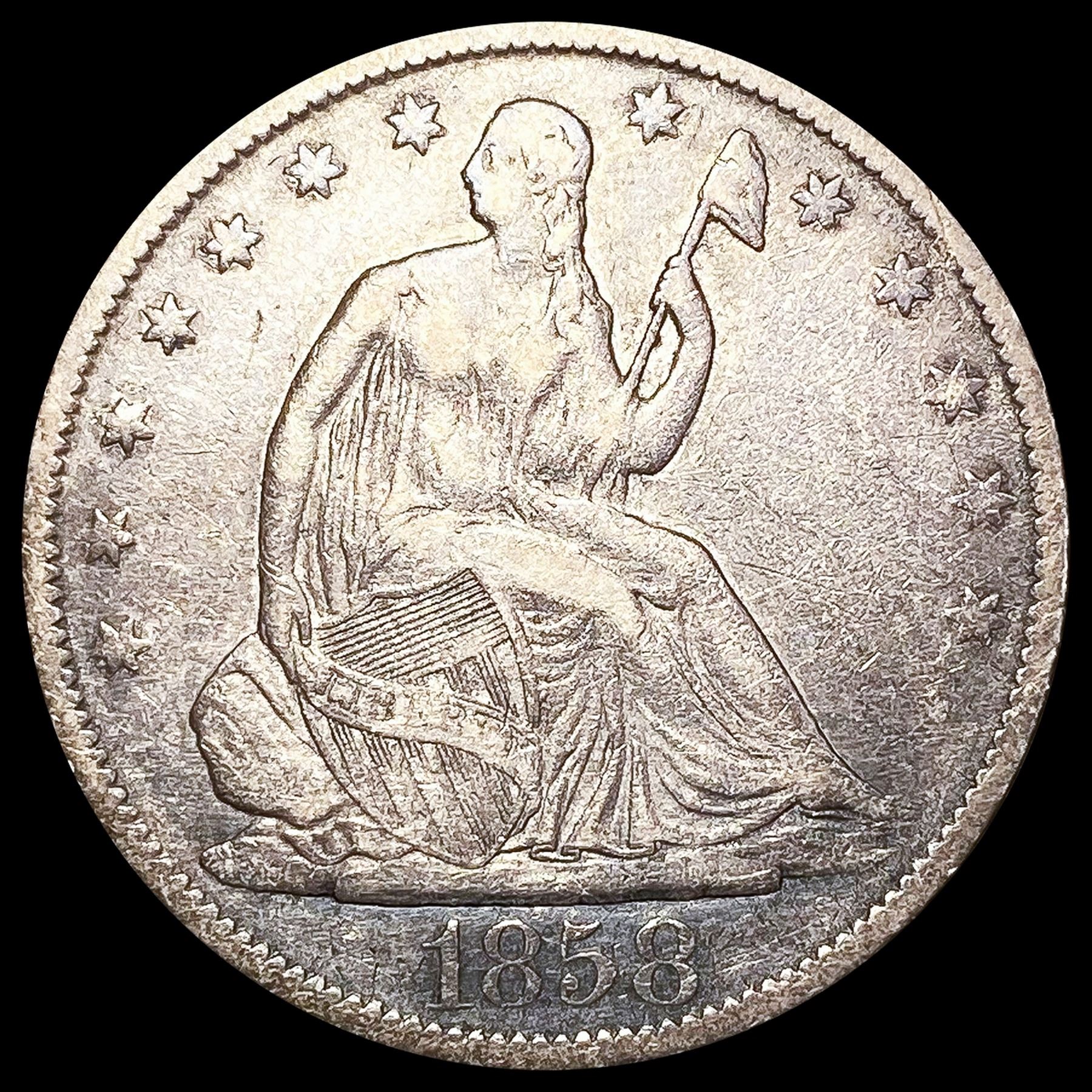1858-O Seated Liberty Half Dollar CLOSELY UNCIRCUL