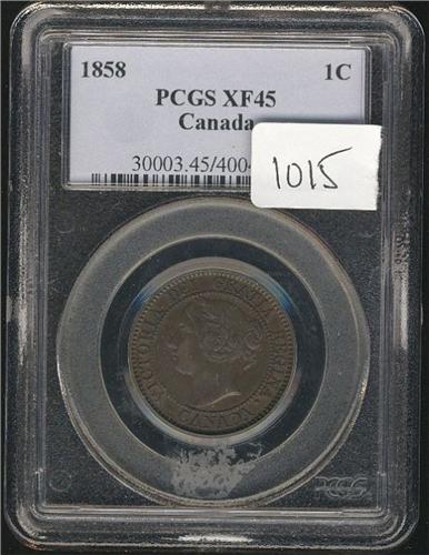 1858 PCGS EF45 a nice chocolate example with a tiny bit of lustre remaining.