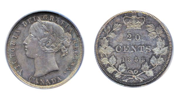 1858. PCGS graded Mint State-64. Fully struck. Light premium quality toning on the obverse, with a slightly deeper light violet toning on the reverse. Excellent ‘eye appeal’.