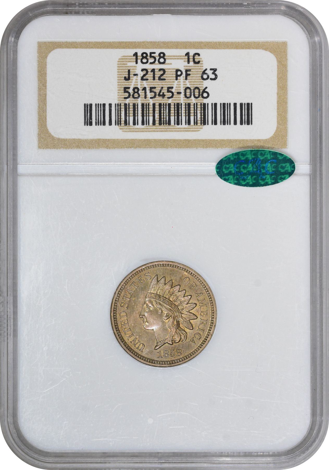 Header: Choice Proof 1858 Indian Cent Pattern