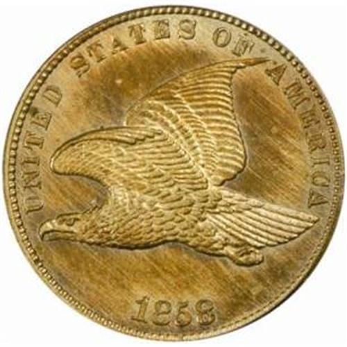 <style type="text/css"> body, td, th { font-family: Arial, Helvetica, sans-serif; font-size: 12px; color: #482424; margin: 0px; padding: 0px; } #header { background-image: url(http://www.bowersandmerena.com/ebay/images/template_v3_01.gif); clear: both; background-color: #590303; border-top-width: 2px; border-top-style: solid; border-top-color: #B38C4F;}#header #header_wrapper { height: 75px; clear: both; width: 800px; margin-right: auto; margin-left: auto; background-image: url(http://www.bowersandmerena.com/ebay/images/template_v3_03.gif); background-repeat: no-repeat; background-position: right; color: #F3EDCC;}#header #header_wrapper #header_logo { float: left; height: 75px; width: 444px; background-image: url(http://www.bowersandmerena.com/ebay/images/template_v3_02.gif); background-repeat: no-repeat; font-size: 10px; text-transform: capitalize; color: #B38C4F;}#header #header_wrapper #header_right { float: left; height: 75px; width: 356px; text-align: right;}#header #header_wrapper #header_right #headerLoginBtn { margin-bottom: 30px;}#header #header_wrapper #header_right input#txtSearch { color: #B49056; border: 1px solid #B49056; width: 175px; padding-top: 3px; padding-right: 3px; padding-bottom: 4px; padding-left: 3px;}#nav { height: 37px; background-image: url(http://www.bowersandmerena.com/ebay/images/template_v3_05.gif); clear: both;}#nav #nav_wrapper { height: 35px; width: 800px; margin-right: auto; margin-left: auto; border-left-width: 1px; border-left-style: solid; border-left-color: #B38C4F;}#nav #nav_wrapper a { padding-right: 15px; padding-left: 15px; border-right-width: 1px; border-right-style: solid; border-right-color: #B38C4F; height: 25px; padding-top: 10px; display: block; float: left; text-decoration: none; font-weight: bold; color: #5D0303;}#nav #nav_wrapper a:hover { color: #B38C4F;}#nav #nav_wrapper #search { float: right; padding-top: 7px;}#nav #nav_wrapper #search #txtSearch { font-family: Arial, Helvetica, sans-serif; font-size: 10px; text-transform: uppercase; color: #D2AE75; border: 1px solid #B38C4F; padding: 3px;}#content_bgd { background-image: url(http://www.bowersandmerena.com/ebay/images/template_v3_09.gif); background-repeat: repeat-y; background-position: center; padding-top: 15px; padding-bottom: 15px; background-color: #FBFBDB;}#content_wrapper { clear: both; height: auto; width: 800px; margin-right: auto; margin-left: auto;}.LotDetailWhite{ line-height:normal; font-size:13px; font-family: arial,helvetica,sans-serif; color: White; font-weight: bold;}.LotDetailInformation{ line-height:normal; font-size: 13px; font-family: arial,helvetica,sans-serif;}.LotDetailMessage{ line-height:normal; font-size: 13px; font-family: arial,helvetica,sans-serif; color: red;}}tr.HeaderAuctionTitle td { color: #000000; font-weight: bold; padding: 2px; background-image: url(http://www.bowersandmerena.com/ebay/images/template_v3_05.gif); background-repeat: repeat-x; border-bottom-width: 1px; border-bottom-style: solid; border-bottom-color: #B38C4F;}table.AuctionSummary a, table.AuctionSummary a:link, table.AuctionSummary a:visited { color: #0000FF; text-decoration: none;}}td.tableHeaderLeft { border-left-width: 1px; border-left-style: solid; border-left-color: #B38C4F;}td.tableHeaderRight { border-right-width: 1px; border-right-style: solid; border-right-color: #B38C4F;}td.tableCellMiddle { border-left-width: 1px; border-left-style: solid; border-left-color: #B38C4F; border-right-width: 1px; border-right-style: solid; border-right-color: #B38C4F; padding: 5px;}tr.footer td { border-top-width: 1px; border-top-style: solid; border-top-color: #B38C4F;}</style></head><body><div id="header"> <div id="header_wrapper"> <div id="header_logo"> </div> <div id="header_right"> </div> </div></div><div id="nav"> <div id="nav_wrapper"> <a href="http://www.bowersandmerena.com">Our eBayLive Auctions</a> <a href="#PaymentInfo">Payment Information</a> <a href="#ShippingInfo">Shipping Information</a> <a href="#About">About Bowers and Merena</a> </div></div><div id="content_bgd"> <div id="content_wrapper"> <table width="100%" border="0" cellpadding="5" cellspacing="0" class="AuctionSummary"> <tbody> <tr class="HeaderAuctionTitle" style="height: 25px;"> <td align="left" class="tableHeaderLeft" > </td> <td align="center" class="tableHeaderRight"> <span style="font-size: large;">Lot #960. 1858 Pattern Flying Eagle Cent. Judd-192, Pollock-235. Rarity-5. Proof-64 (PCGS). CAC.</span> </td> </tr> <tr> <td colspan="3" class="tableCellMiddle"> The obverse is the same type that the Mint used to strike regular-issue 1858 Flying Eagle Cents of the Small Letters hub variety. The reverse exhibits the denomination ONE CENT within an oak wreath. An olive sprig and bundle of three arrows are bound at the base of the wreath. Struck in copper-nickel with a plain edge. Bright, reflective fields form a splendid backdrop to razor-sharp devices. A very pretty specimen, tannish-rose obverse color warms to more of a honey-tan shade on the reverse.