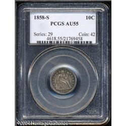 1858-S 10C AU55 PCGS. Nicely struck, with smoky-gr 1858-S 10C AU55 PCGS.