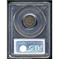 1858-S 10C AU55 PCGS. Nicely struck, with smoky-gr <B>1858-S 10C AU55 PCGS.</B></I> Nicely struck, with smoky-gray patina, and remarkably clean surfaces. A very pleasing, lightly circulated, coin. Population: 2 in 55, 5 finer (11/04). <BR><BR><B>Important notice:</B> Heritage usually auctions material at the rate of 200-250 lots per hour. On some occasions eBay Live bid software or the Internet may not be able to keep up with the pace of the auction. We recommend placing a realistic absentee bid now as insurance to avoid disappointment. Occasionally the auctioneer may eliminate or reject an eBay Live bid, and the auctioneer may also reopen a lot after the close of the eBay live bidding (usually because we missed an audience bid), and may reject your bid even if it shows you as the winning bidder. By bidding via eBay Live, you agree that Heritage may award the lot to another bidder at its sole discretion under the circumstances described above or any other reasonable circumstances. Since eBay bids are not shown to us until we open the lot on the floor, we treat those bids just like floor bids. In most cases the floor responds before the eBay bid is presented to us, due to Internet lag time, so for consistency we have made it a policy that floor bids are always considered first over tie eBay live bids. Also please note that all Heritage lots purchased through eBay Live carry a 20% Buyer's Premium. Please make sure you read the Terms and Conditions before you bid. This lot is being auctioned in conjunction with a live floor auction by Heritage Galleries & Auctioneers. All final auction and invoice information will be supplied by Heritage Galleries & Auctioneers, and all other information should be considered preliminary. Lot:5715